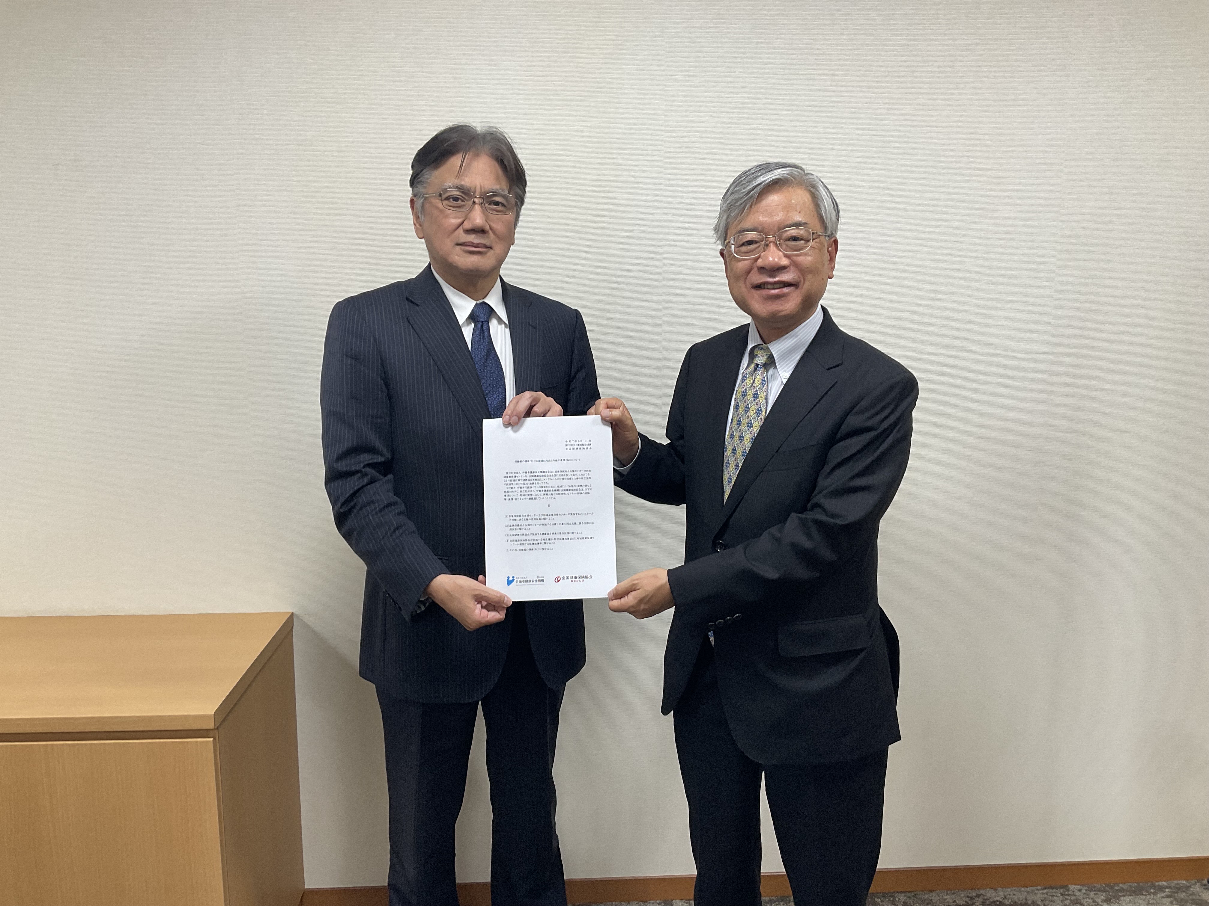 | 当機構の大西理事長(左)と協会けんぽの北川理事長 |